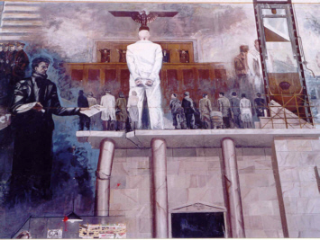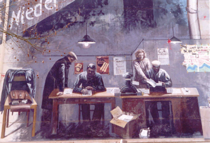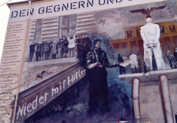 Wandbild von Jürgen Waller Titel: Den Gegnern und Opfern des Faschismus Maße: 23m x 19m 1984 |