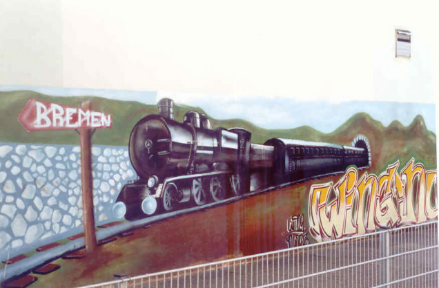 Diese Site ist Teil einer Fotodokumentation über Wandmalerei in Bremen. Die fotografierten Objekte sind zum Teil im Rahmen der Kunstförderung “Kunst im öffentlichen Raum” entstanden. Andere Objekte sind durch die private Initiative von Einzelpersonen, Institutionen oder Firmen ermöglicht worden. Ich wünsche allen die diese Site besuchen, viel Spaß beim Betrachten der Bilder. Ce site est une série de clichés sur les façades peintes de Bremen.Certains sujets photographiés résultent de commandes faites aux artistes par la ville de Bremen. D’autres sujets résultent d’initiatives privées ou sont devenus réalisables à la suite de commandes faites par des institutions ou des entreprises.Nous espérons que vous prendrez plaisir à regarder ces images. Murals of Bremen (Germany). Some murals result from orders made to the artists by Bremen itself. Other murals result from private initiatives or were made possible by corporate sponsorship or by orders made by other institutions. We hope that you will enjoy to view these images. Livre d’or Gästebuch Guestbook Liens avec la ville de Bremen Bremen-Links: |