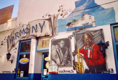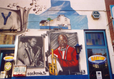 Die Fassade wurde in der Zwischenzeit neu gestaltet, das Wandbild existiert nicht mehr!