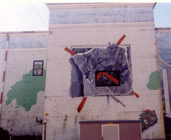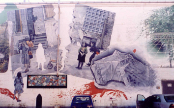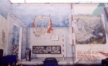 Künstler: Rolf Thiele, Titel: Idylle und Gewalt, Größe: 10x55m, Ort: Kornstraße, Jahr der Entstehung: 1981 |
