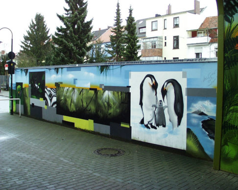 Diese Site ist Teil einer Fotodokumentation über Wandmalerei in Bremen. Die fotografierten Objekte sind zum Teil im Rahmen der Kunstförderung “Kunst im öffentlichen Raum” entstanden. Andere Objekte sind durch die private Initiative von Einzelpersonen, Institutionen oder Firmen ermöglicht worden. Viel Spaß beim Betrachten der Bilder. Ce site est une série de clichés sur les façades peintes de Bremen. Certains sujets photographiés résultent de commandes faites aux artistes par la ville de Bremen. D’autres sujets résultent d’initiatives privées ou sont devenus réalisables à la suite de commandes faites par des institutions ou des entreprises. Nous espérons que vous prendrez plaisir à regarder ces images. Murals of Bremen (Germany). Some murals result from orders made to the artists by Bremen itself. Other murals result from private initiatives or were made possible by corporate sponsorship or by orders made by other institutions. We hope that you will enjoy to view these images. Livre d’or Gästebuch Guestbook Liens avec la ville de Bremen Bremen-Links: |