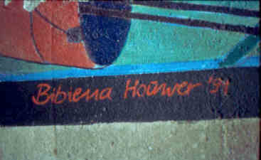 Auf diesen Wandbildern werden Arbeitssituationen bei der Firma John Deere, Mannheim künstlerisch umgesetzt. Die Wandbilder wurden 1991 von Bibiena Houwer auf einer Fabrikmauer der Firma John Deere realisiert. Sie existieren heute nicht mehr. Um Detailansichten der Bilder zu betrachten, klicken Sie einfach auf eines der Fotos. |